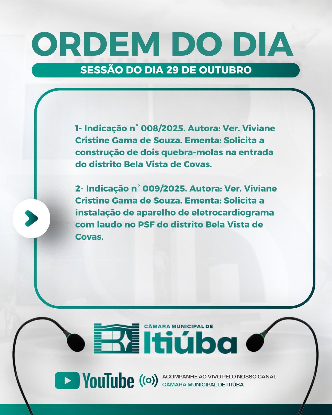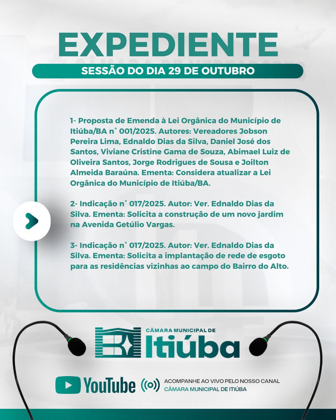 Acompanhe de forma presencial ou pelo Instagram e o canal do YouTube: Câmara Municipal de Itiúba.
